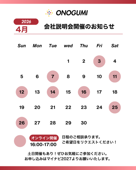 ※日程についてはご相談可能です! 5月以降も順次開催します!